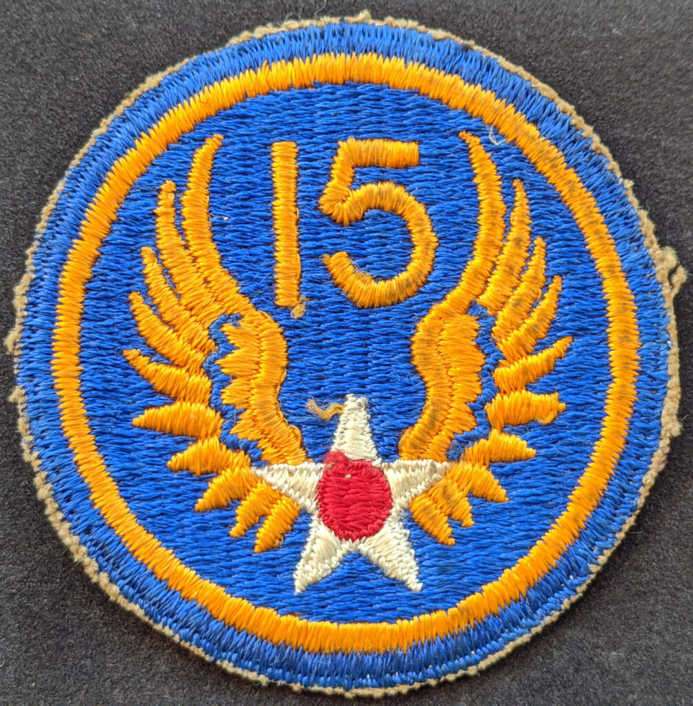 My grandfather’s shoulder patch, indicating that he belonged to the Fifteenth Air Force, Burriss family photo
